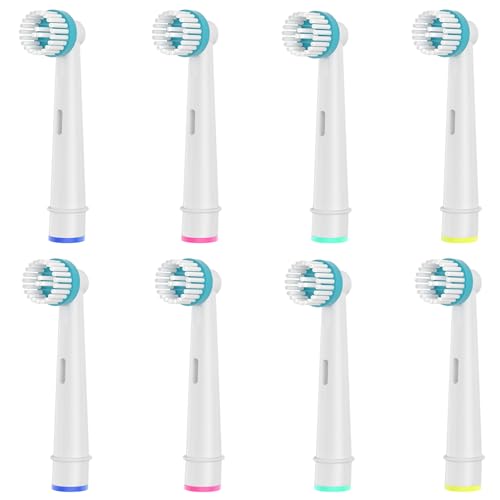 8 Pack Sensitive Gum Care Replacement Brush Heads Compatible with Oral b Braun Electric Toothbrush. Soft Bristle for Superior and Gentle Clean