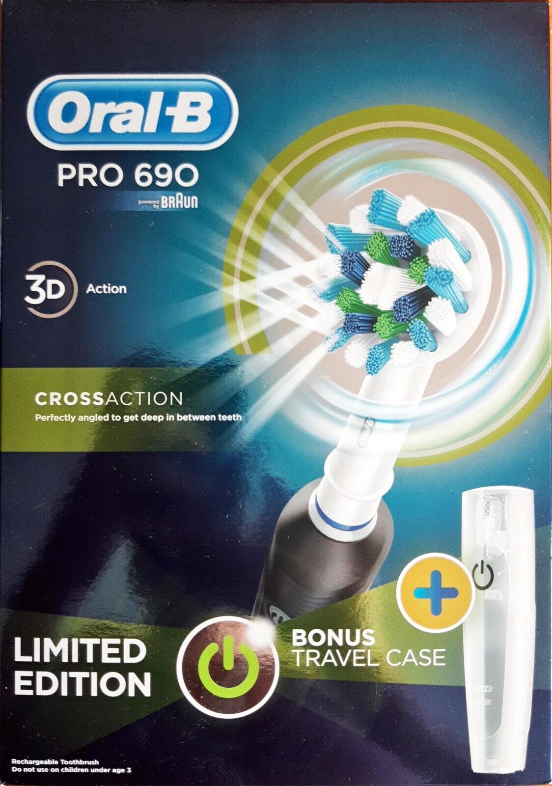 Braun Oral-B Pro 690 Cross Action Rechargeable Electric Toothbrush +Travel Case