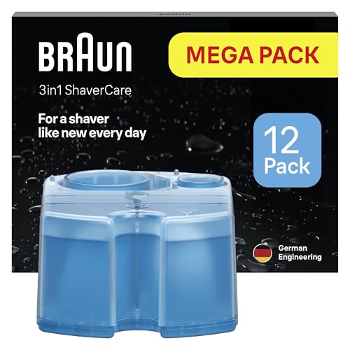 Braun 3in1 ShaverCare ORIGINAL SmartCare Center Refill Cartridges, Cleans 10x Better Than Water, 3in1 Formula With Lemon Scent, Provides Hygienic Cleaning To Remove Hair & Skin Particles, 12 Pack