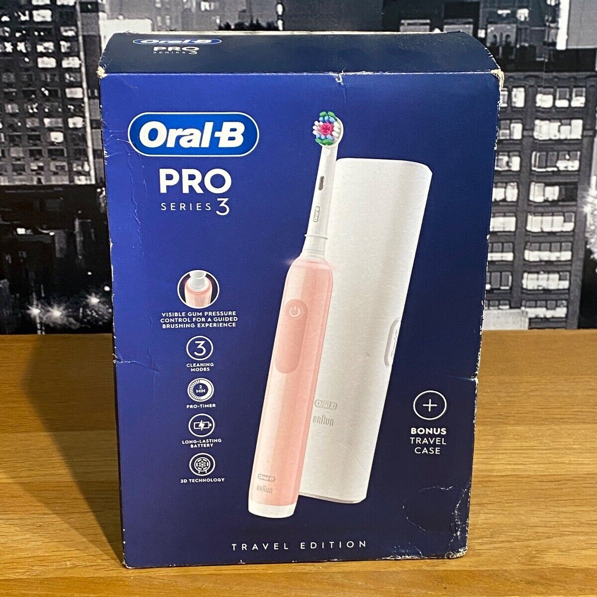 Oral-B PRO Series 3 Rechargeable Electric Toothbrush with Travel Case Pink