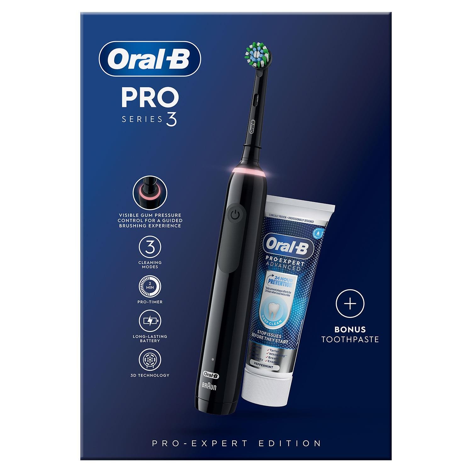 Oral B OralB Pro Series 3 Electric Rechargeable Toothbrush with Bonus Toothpaste, Black - One Size