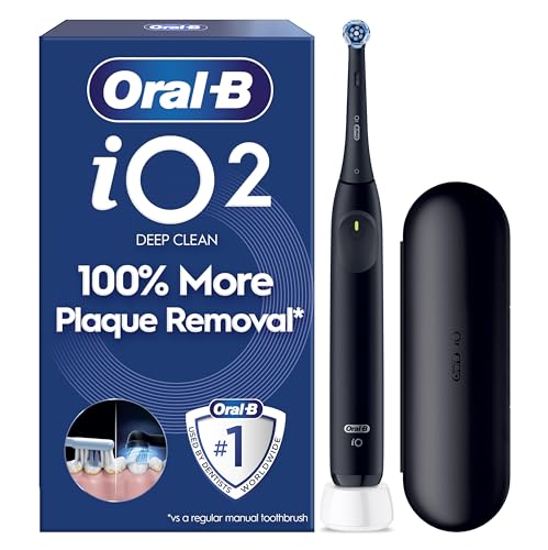 Oral-B iO2 Night Black Electric Toothbrush, 1 Toothbrush Head, 1 Travel Case, Designed by Braun