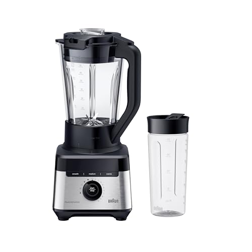 Braun PowerBlend 7 JB7550BK, Jug Blender with Triangular Glass Jug, 10 Speed Pulse Function, PrecisionCrush Blade, Clean Program, Tamper and 600ml Bottle Included, 1400W, Black