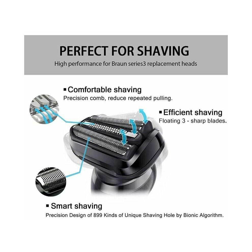 Shaver Foil and Cutter Head Replacement, Floating 3-Blade Shaver Head Compatible with Braun Series 3 Models 32B S3, Bionic Mesh Design Precision