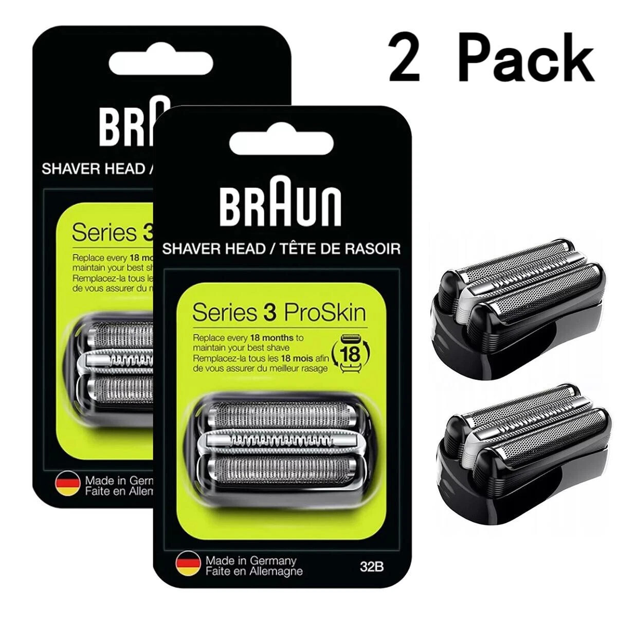 2Pack Braun Series 3 32B Shaver Replacement Head ProSkin Electric Shavers LK6