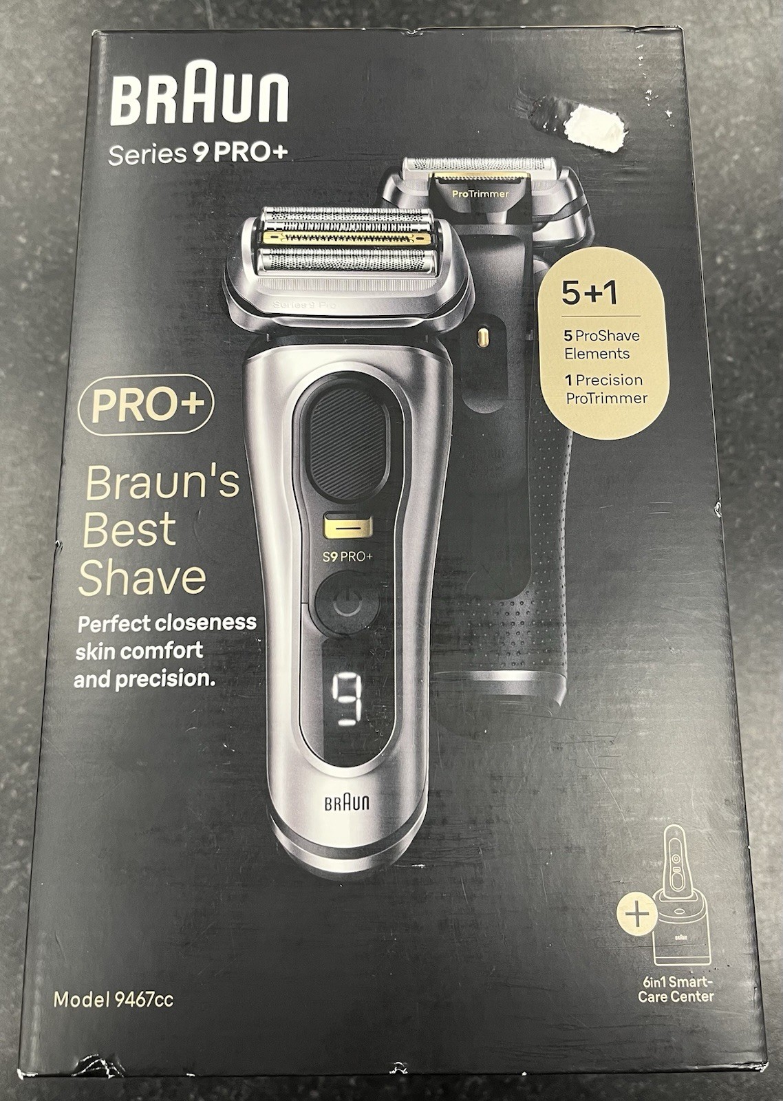 Braun Series 9 PRO+ Electric Shaver for Men, 5 Shave Elements & Precision Hair Trimmer, SmartCare Center, PowerCase, Wet & Dry Electric Razor, 9477cc, Silver