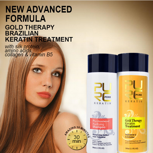 Gold Therapy Pure Brazilian Keratin Hair Straightening Treatment Blow Dry 100 ml