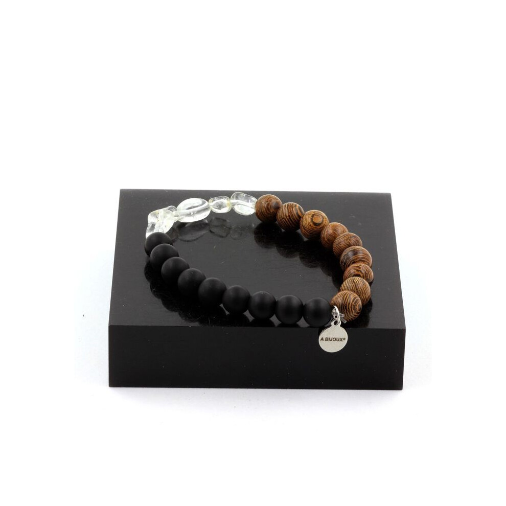 Stones and Minerals. Brazilian Topaz Bracelet + Matte Black Onyx Beads + 8 mm wood. Made in France.