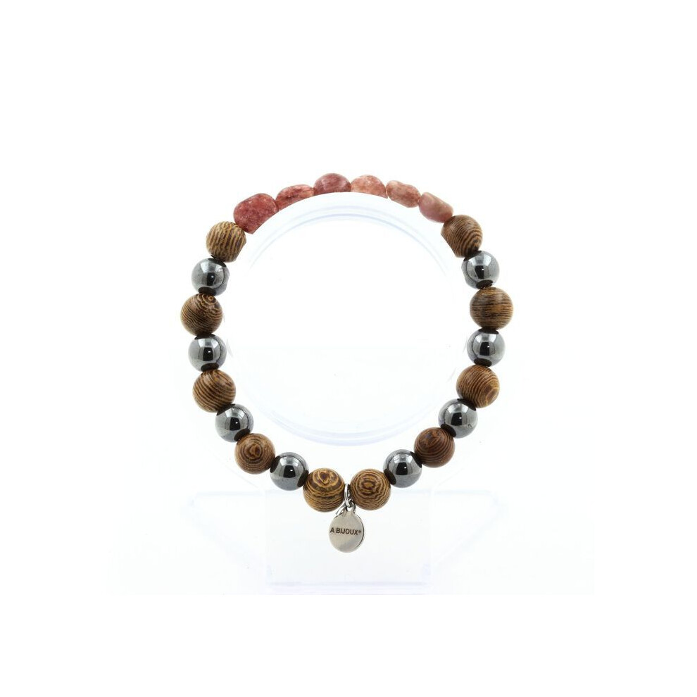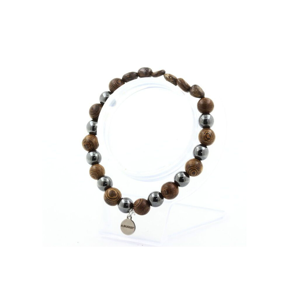 Stones and Minerals. Brazilian Bronzite Bracelet + Hematite Beads + 8 mm wood. Made in France.
