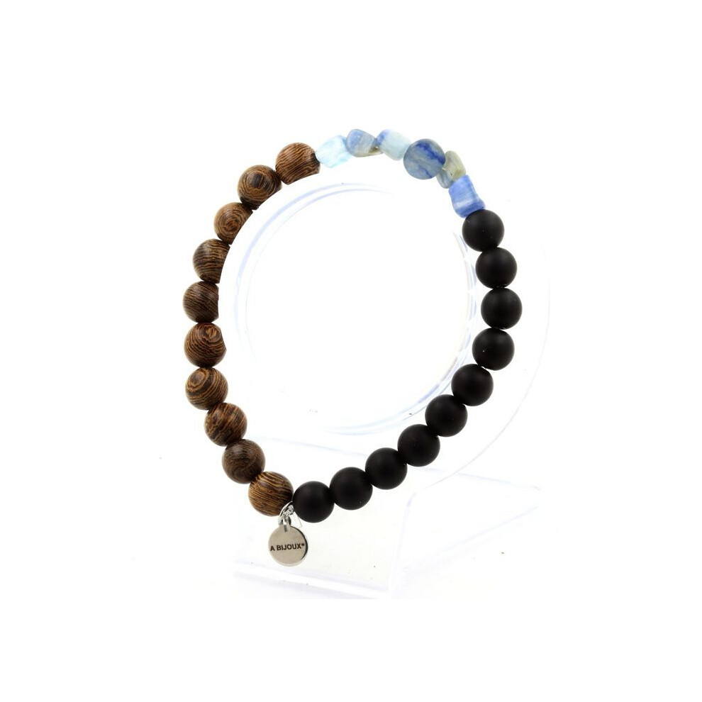Stones and Minerals. Brazilian Blue Kyanite Bracelet + Matte Black Onyx Beads + 8 mm wood. Made in France.
