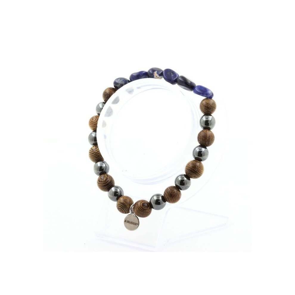 Stones and Minerals. Brazilian Sodalite Bracelet + Hematite Beads + 8 mm wood. Made in France.