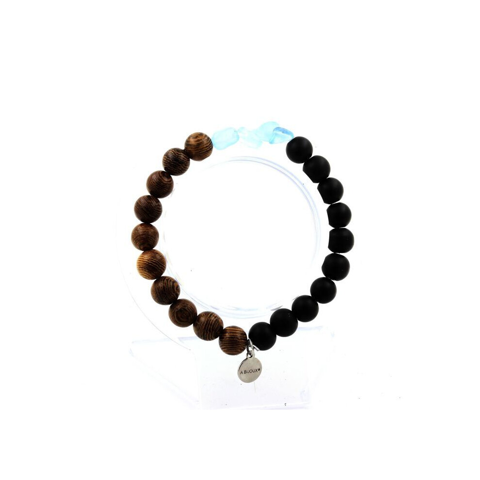 Stones and Minerals. Brazilian Aquamarine Bracelet + Matte Black Onyx Beads + 8 mm wood. Made in France.