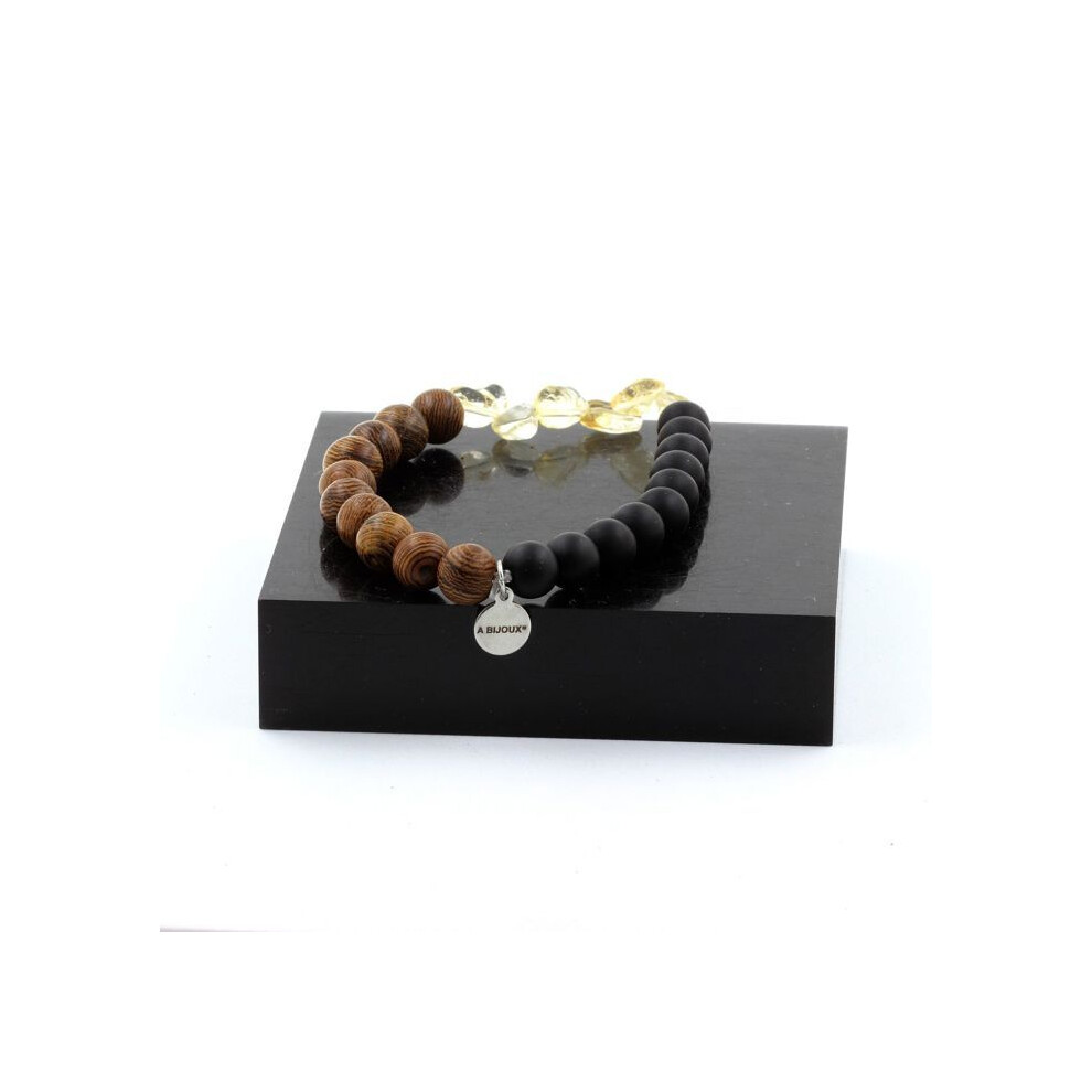 Stones and Minerals. Brazilian Citrine Bracelet + Matte Black Onyx Beads + 8 mm wood. Made in France.