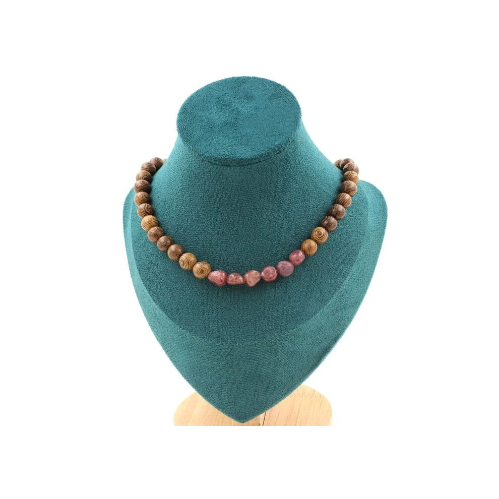 Stones and Minerals. Brazilian Ruby pearl necklace + 8 mm wood. Steel chain Necklace for women, men. Customizable size.