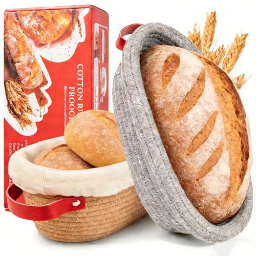 Banneton Proofing Basket, 9" Round & 10" Oval Sourdough Bread Proving Basket with Liner & Cover | Cotton Rope Sourdough Starter Baskets Baking Accessories, Artisan Baking Gifts for Women, Wife, Bakers