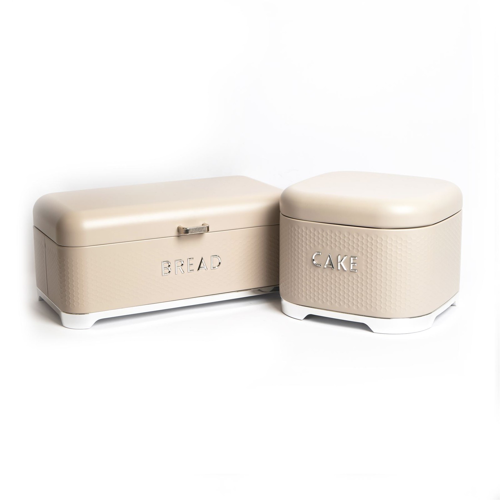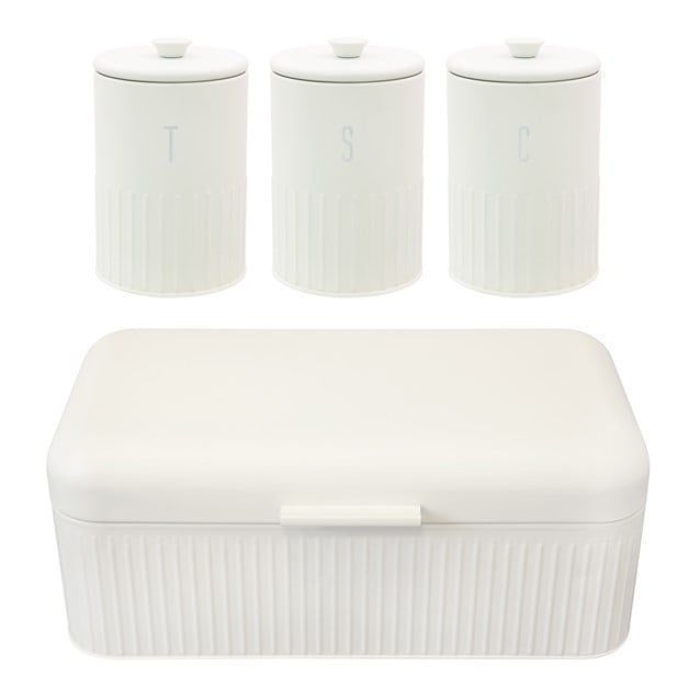 Typhoon Rippled Metal Tea Coffee Sugar Canister Set & Bread Bin Crock Set Cream
