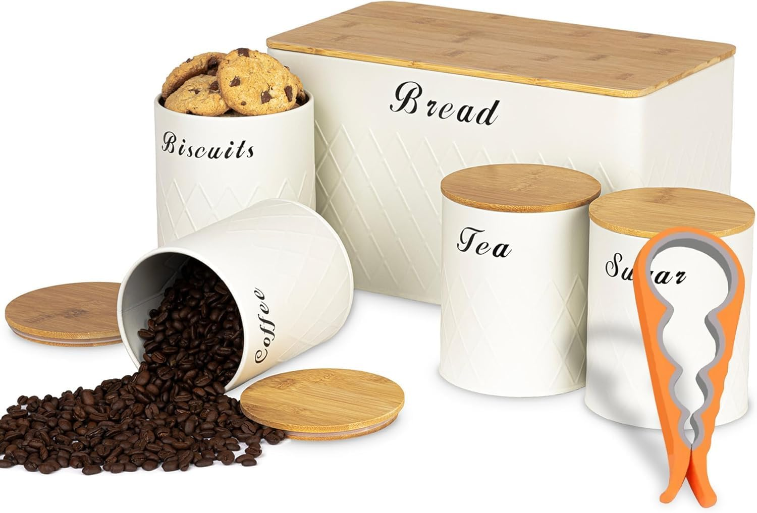 Elegant Bread Bin Set Stylish Cream Canisters Sets Storage Tins for Kitchen, Bis