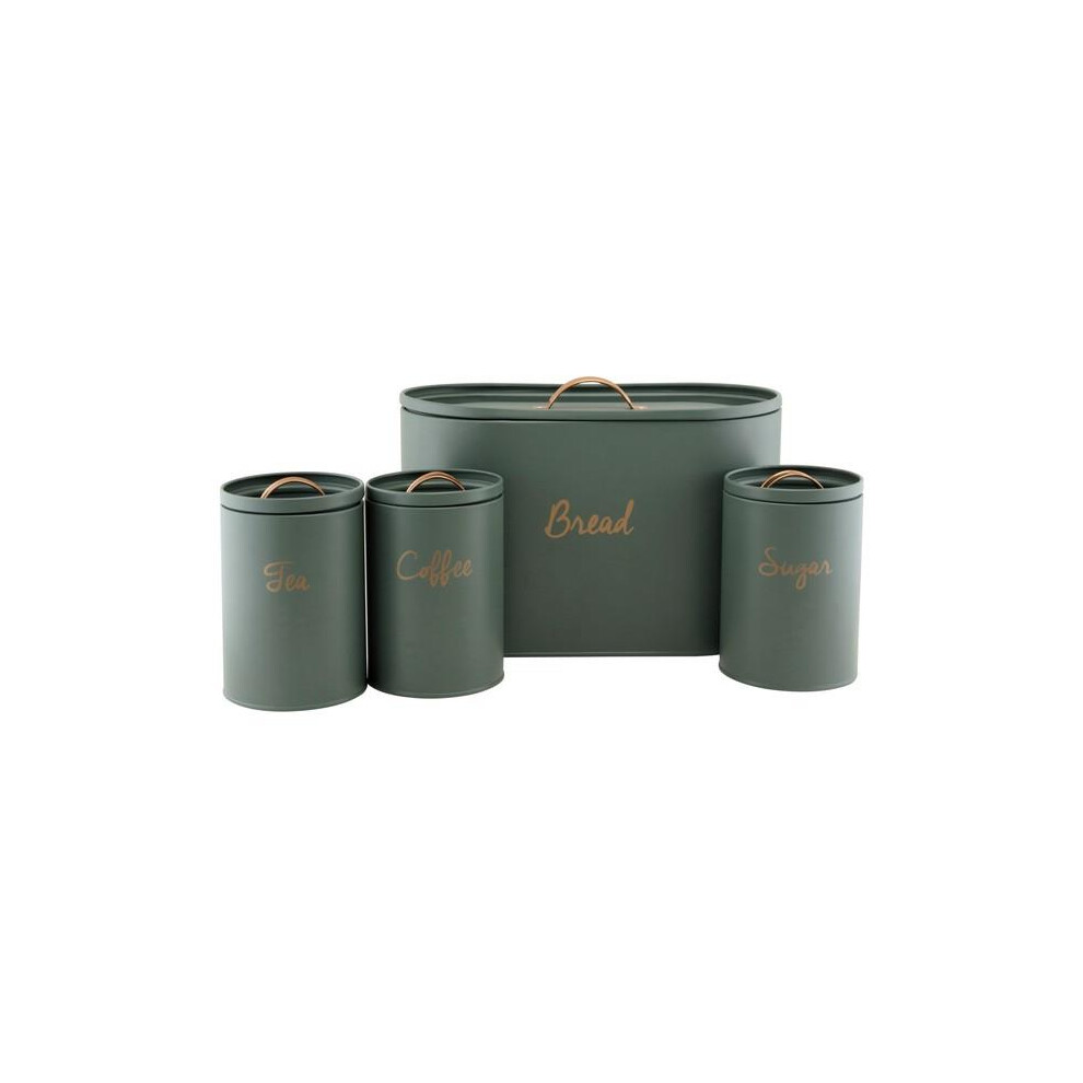 Typhoon 4PC Metal Bread Bin Storage Canister Set Sugar Coffee Tea Highgate Green