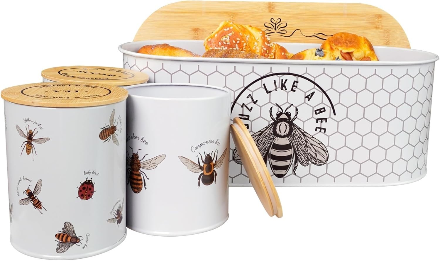 Bumble Bee Bread Bin Set – Tea Coffee Sugar Storage – Gift for Bee Lovers Kitche
