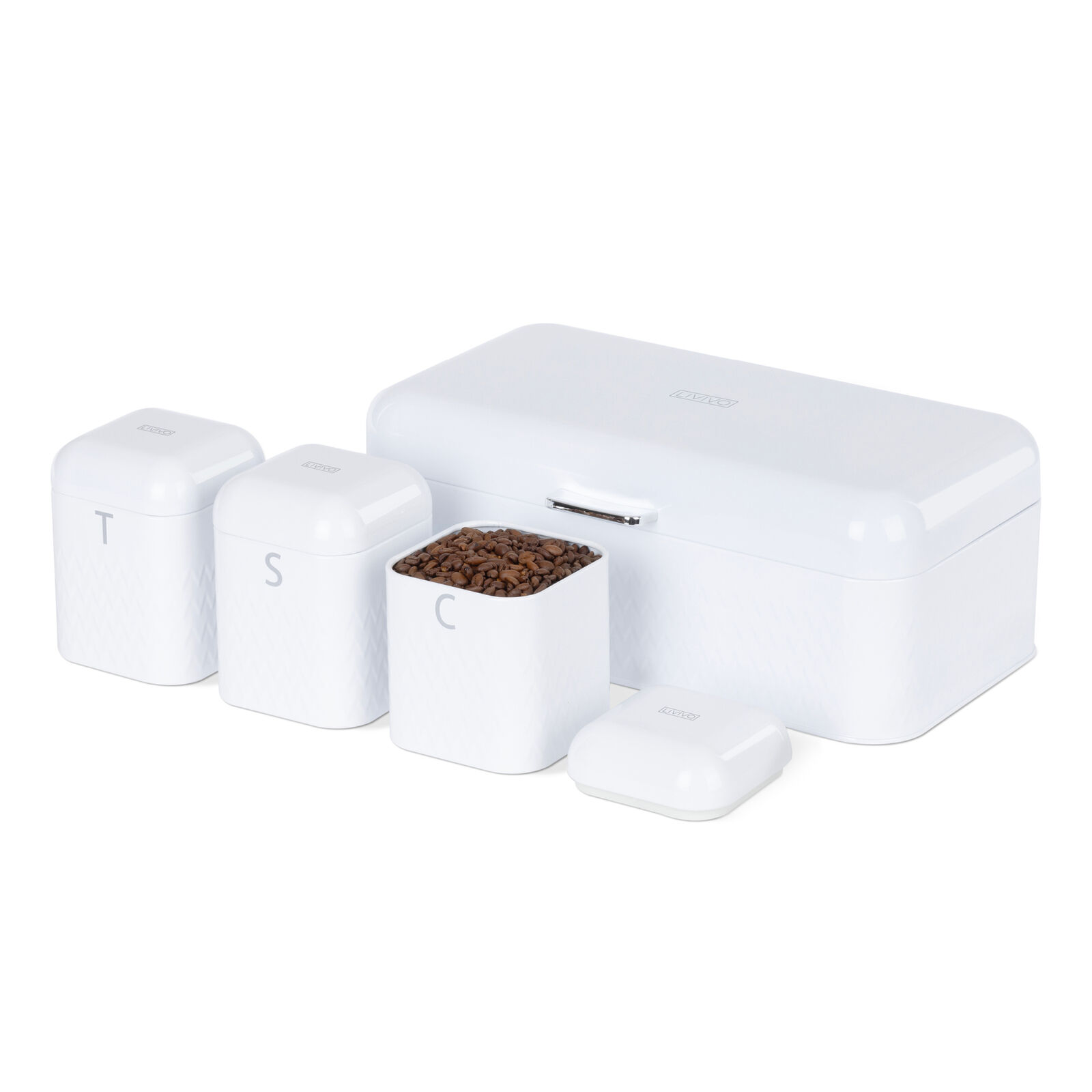 Living Tea, Coffee & Sugar Canisters and Bread Bin Set - Cream