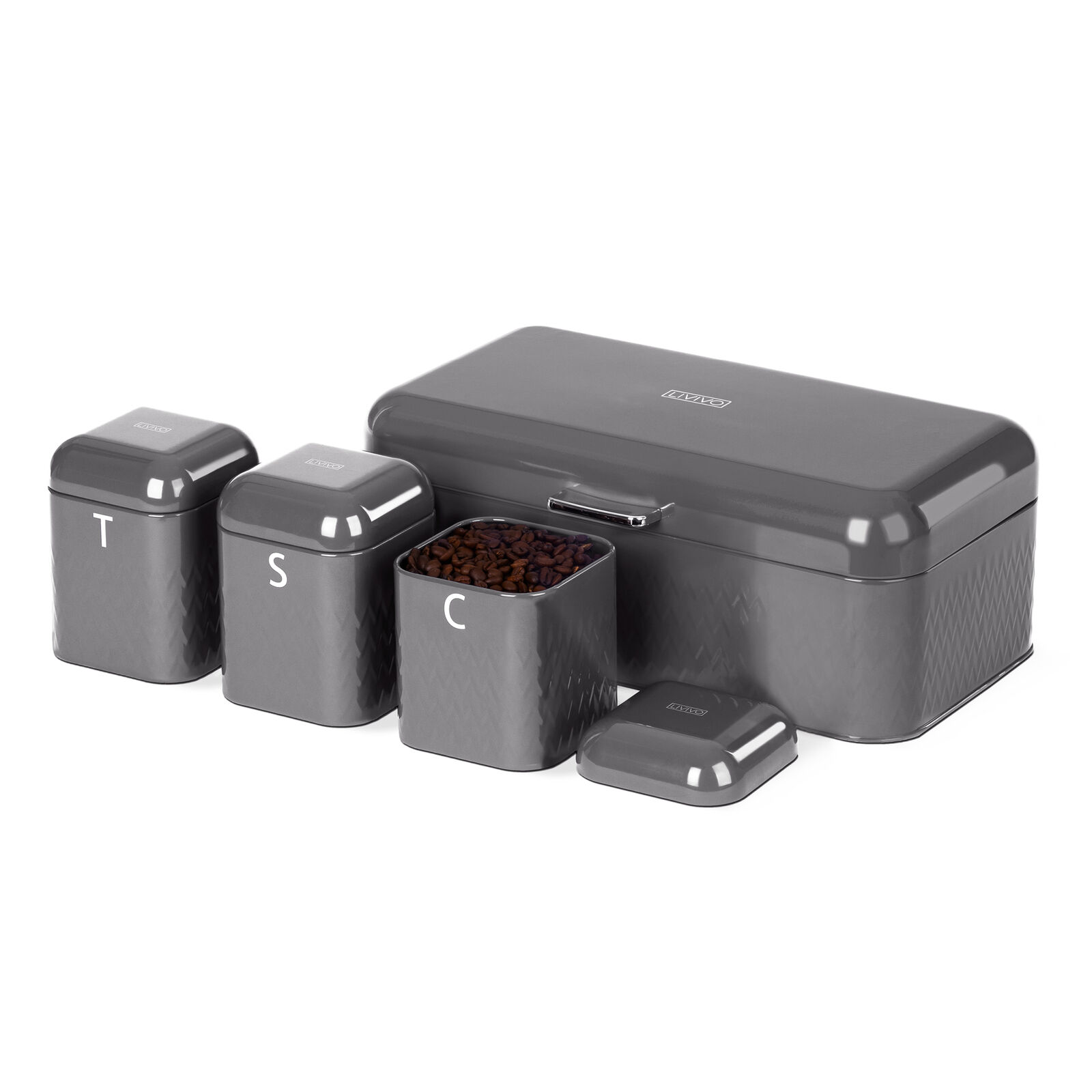 Living Tea, Coffee & Sugar Canisters and Bread Bin Set - Grey