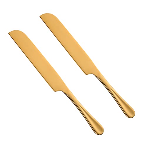 BISDARUN Bread Knives for Homemade Bread Stainless Steel Gold Cake Knives for Wedding 2 Pieces Bread Cutter, Overall Length 26.8 cm/ 10.55 Inch, Blade Length 14.3cm / 5.6 Inch