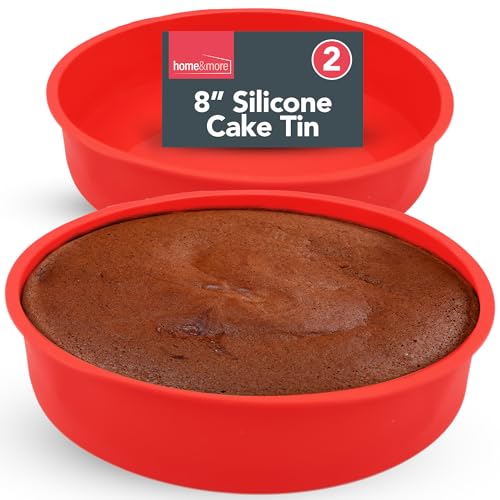 SOL 2pk 8" Silicone Cake Tins – Round Non-Stick Moulds – Durable Baking Trays for Even Heat Distribution, Homemade Sponges, Layer Cakes, Bread, Dishwasher & Freezer Safe