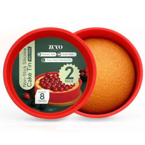 Zuvo - Silicone Cake Tins (2 Pack)– 8 Inch Round Cake Moulds for Baking, Non-Stick Pans for Layer Cakes, Cheesecake, Sponge, Bread & Desserts – Oven, Freezer & Dishwasher Safe