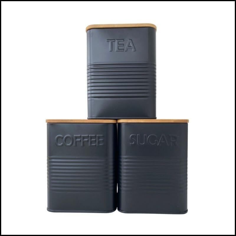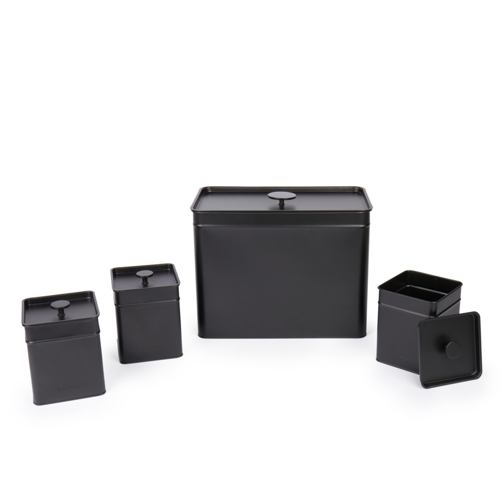 Salter 4 Piece Canister Set with Bread Bin, Tea Coffee Sugar Tins Kuro Range