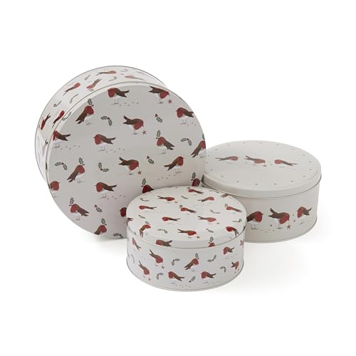 Cooksmart Robins Retreat Set of 3 Round Cake Tins | Durable Baking Pans for Cakes, Cheesecakes & Bread | Non-Stick Round Cake Tins with Festive Robin Design | Essential Bakeware for Home & Events