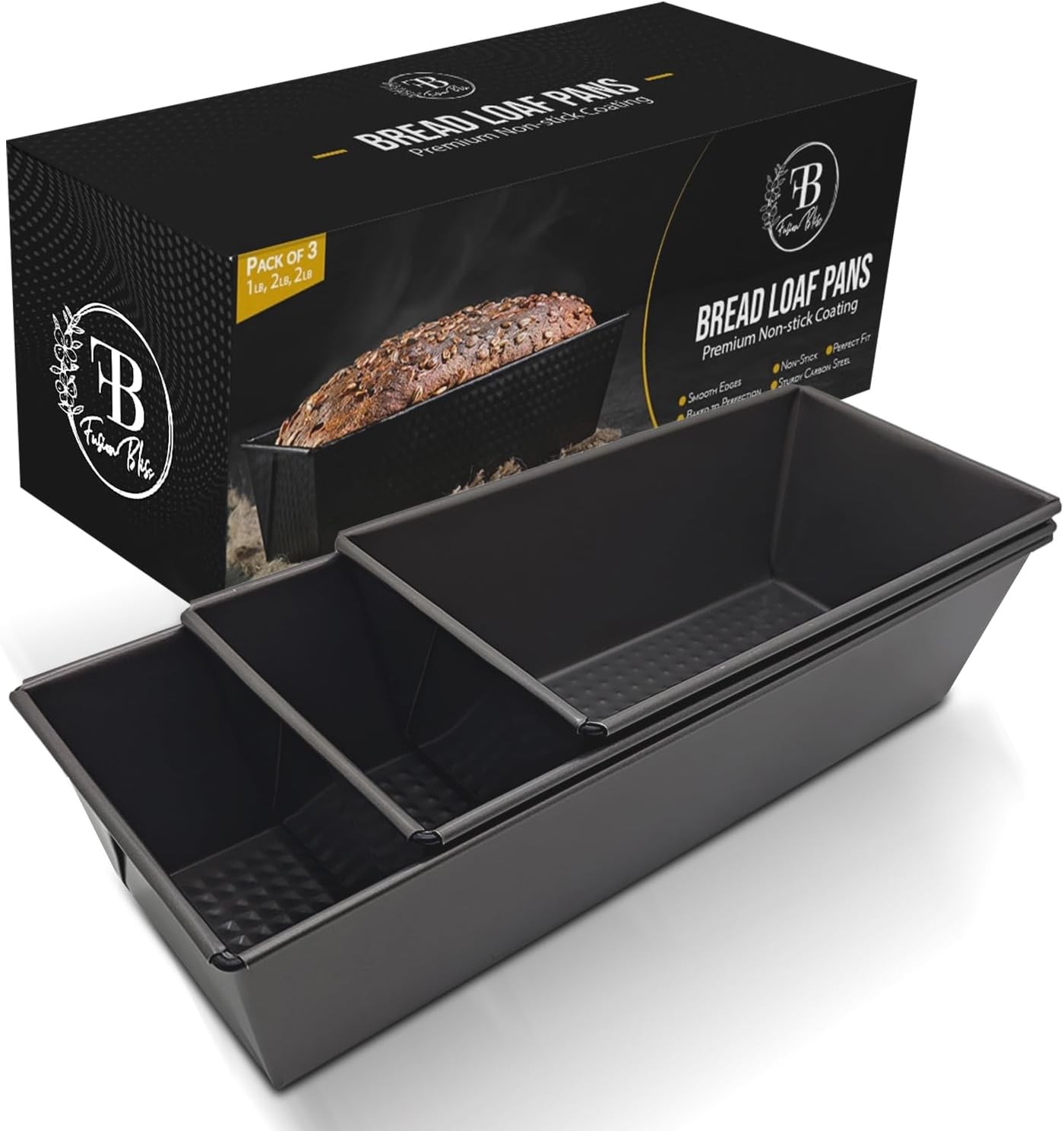 Fusion Bliss Premium Loaf Tins Set of 3 – Carbon Steel Non-Stick Bread &...