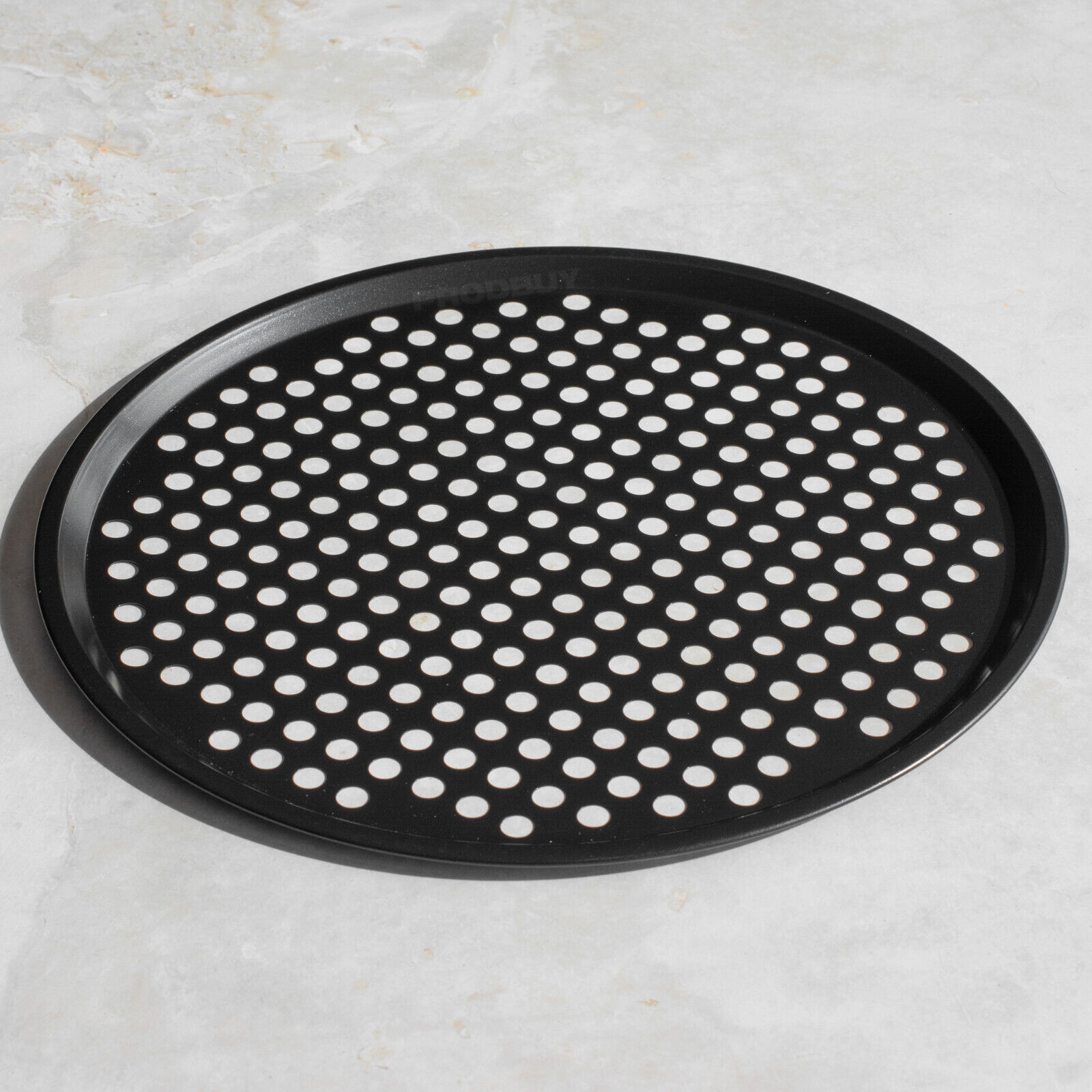 Set of 3 Pizza Trays Large 34cm Non Stick Bread Baking Crisper Round Oven Tins