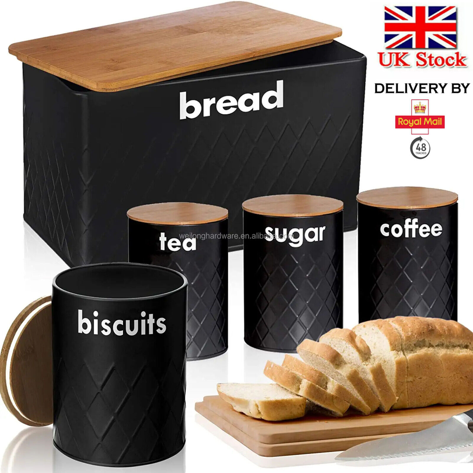 Bread Bin Biscuit Barrel Tea Coffee Sugar Canisters Tins Air Tight 5 Piece Set