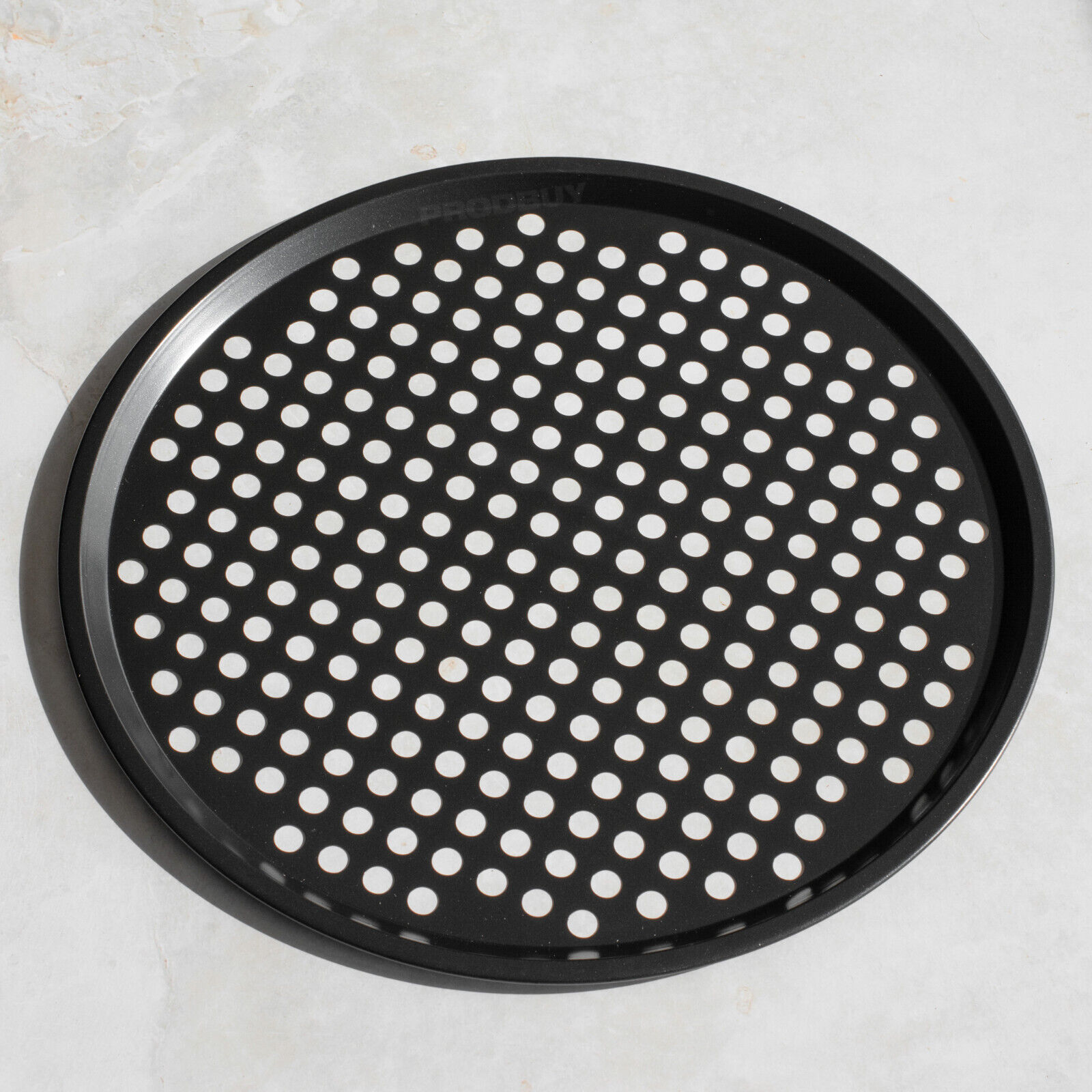 Set of 2 Pizza Trays Large 34cm Non Stick Bread Baking Crisper Round Oven Tins