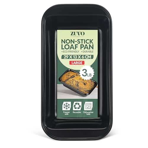 Zuvo - Non-Stick Loaf Tins for Baking Bread & Cakes – (3 LB / 1.35 kG) Carbon Steel Bread Pans with Easy Release Coating – Durable, Oven & Dishwasher Safe