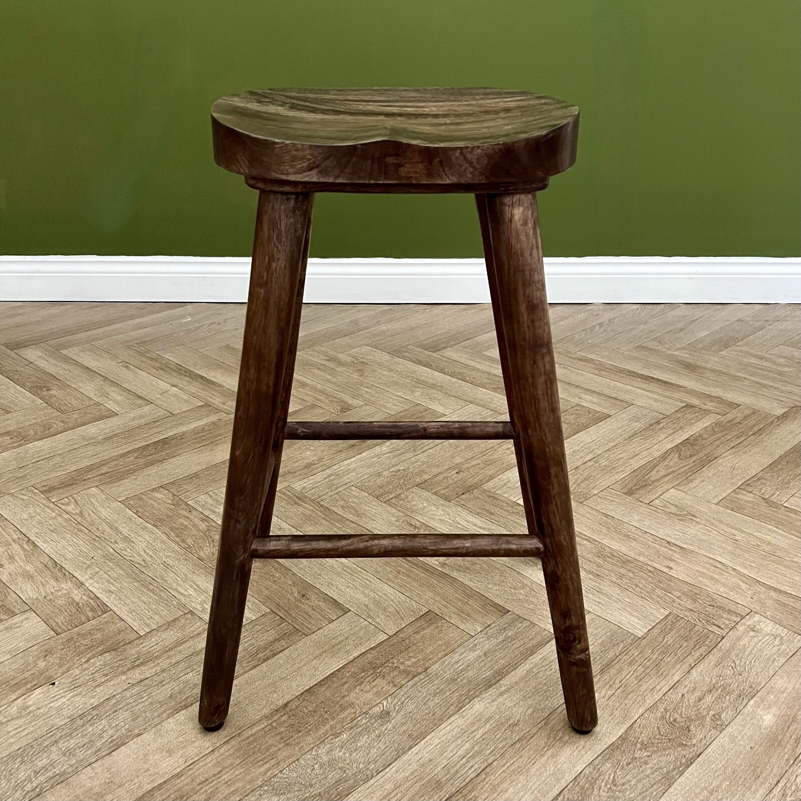 Elm home and garden Solid Wooden Breakfast Kitchen Bar Stool Dark Oak Finish Fully Assembled No Veneer 70cm High, 40cm Wide, 34cm Deep. Bottom of legs widest point 47cm approx.