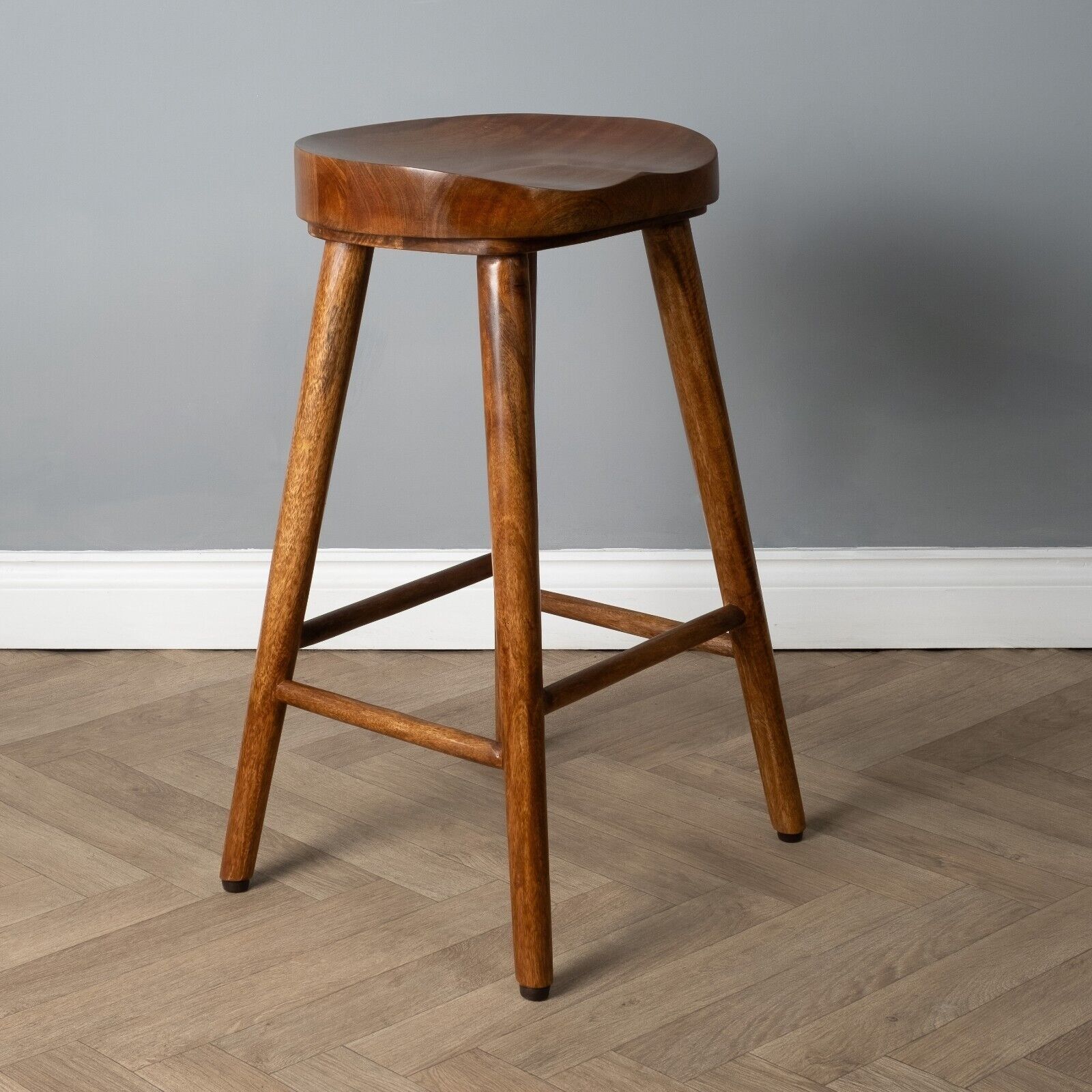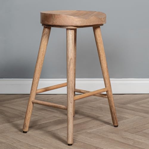 Elm home and garden Solid Mango Wood Kitchen Breakfast Bar Stool Fully Assembled Light Oak Finish 70cm High