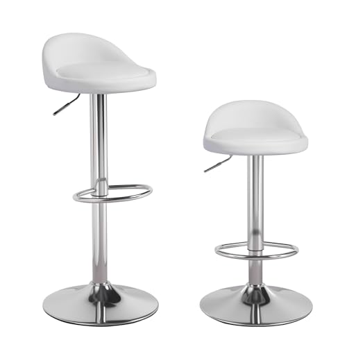 WOLTU Bar Stools Set of 2 Breakfast Bar Chairs Height Adjustable Dining Kitchen Island Stools with Metal Footrest & Base, Faux Leather White