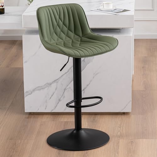 YOUTASTE Bar Stools, Breakfast Bar Chairs with Back, PU Leather Kitchen stools, Swivel Height Adjustable Barstools, Modern (Olive Green, One Stool)