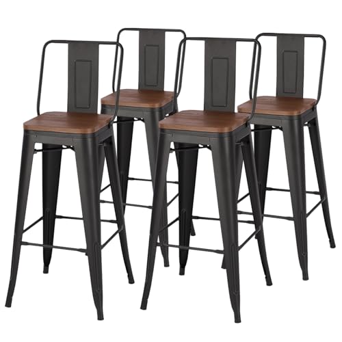Warmiehomy Black Metal Bar Stools Set of 4 Industrial Vintage Barstools with Back Tall High Kitchen Breakfast Bar Chairs Stools for Kitchen Island Counter Coffee Pub Shop Bistro