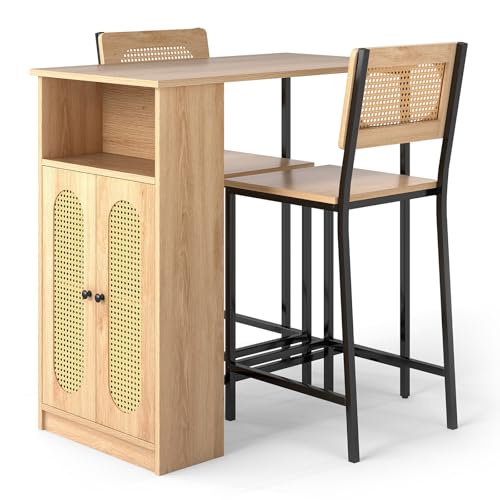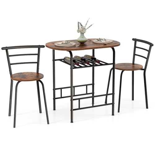 Homullel 3 Pieces Dining Room Set, Compact Dining Table & Chairs Set for Kitchen Living Room, Space Saving Small Kitchen Table and Chair Set with Storage Wine Rack, Breakfast Bar Table Set for 2