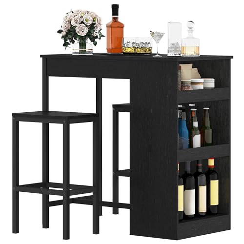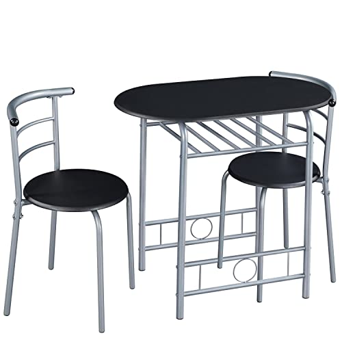 costoffs Dining Table with 2 Chairs, 3 Piece Kitchen Breakfast Bar Set with Open Storage, Dining Room Set for Kitchen/Apartments/Dorm Room, Black
