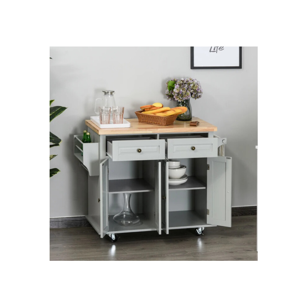 Kitchen Island Unit Large Rustic Wooden Butchers Block Trolley Breakfast Bar Dining Table Storage Drawer Cabinet Grey Door Cupboard Utility Serving Cart