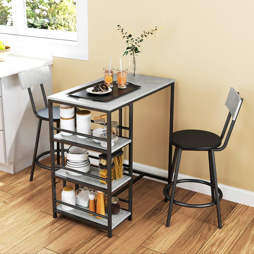 COSTWAY 3 Piece Dining Table Set, Breakfast Bar Table Set with 2 Chairs and Storage Rack, Space Saving Counter Dining Table and Chairs for Home Kitchen Cafe Pub (Grey)