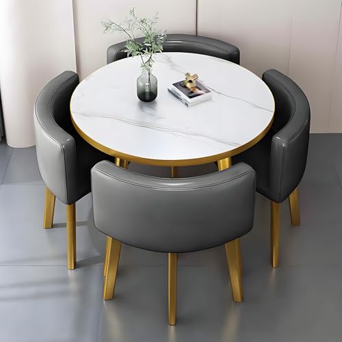 LCBDYLR Round Conference Table Round Breakfast Bar Round Furniture Table and Chair Set, 1 Table and 4 Chairs 5 Piece Set, Kitchen Dining Table Set for Kitchen/Dinning Room 80 * 75CM Grey-C