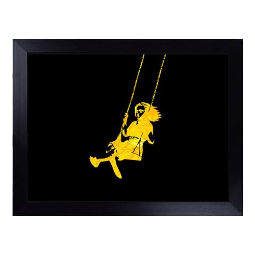 Cushioned Lap Tray with Bean Bag Base for Laptop & Eating – Banksy In Gold Girl On Swing Graffiti Design | Padded Lap Desk for Sofa, Bed & Work | Portable TV Dinner & Breakfast Tray, Easy Clean
