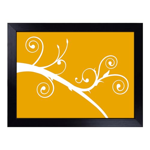 Cushioned Lap Tray with Bean Bag Base for Laptop & Eating – White Branch On Orange Design | Padded Lap Desk for Sofa, Bed & Work | Portable TV Dinner & Breakfast Tray, Easy Clean Surface