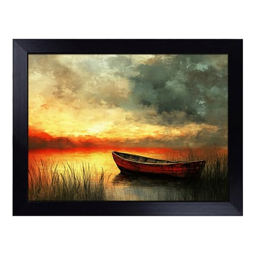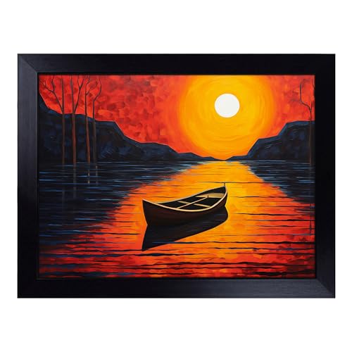 Cushioned Lap Tray with Bean Bag Base for Laptop & Eating – Boat on a Lake Abstract Design | Padded Lap Desk for Sofa, Bed & Work | Portable TV Dinner & Breakfast Tray, Easy Clean Surface