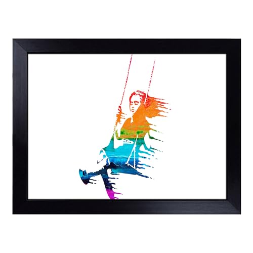 Cushioned Lap Tray with Bean Bag Base for Laptop & Eating – Banksy Girl On Swing Graffiti Design | Padded Lap Desk for Sofa, Bed & Work | Portable TV Dinner & Breakfast Tray, Easy Clean Surface
