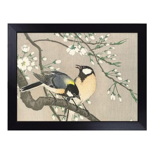 Cushioned Lap Tray with Bean Bag Base for Laptop & Eating – Great Tit On A Paulownia Branch By Ohara Koson Design | Padded Lap Desk for Sofa, Bed & Work | Portable TV Dinner & Breakfast Tray